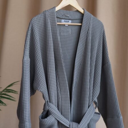 The Waffle Bathrobe is machine washable at 40 degrees Celsius on the cotton setting. For the best results, wash with similar colours and avoid using fabric softeners, which can impact the fabric’s absorbency. Tumble dry on low heat or line dry to reserve its texture.